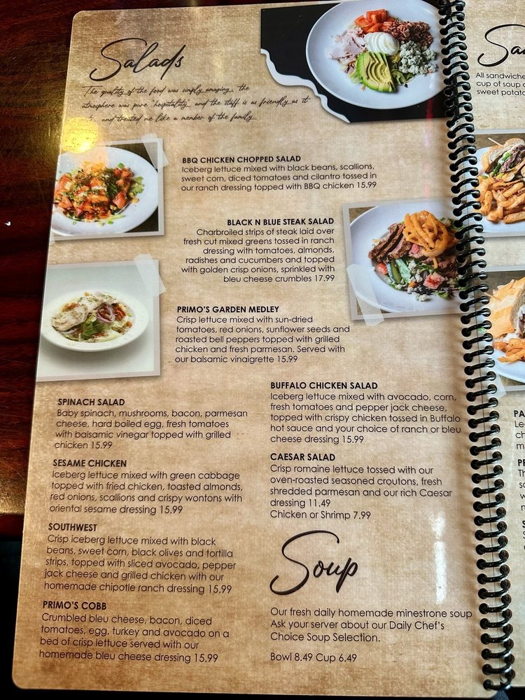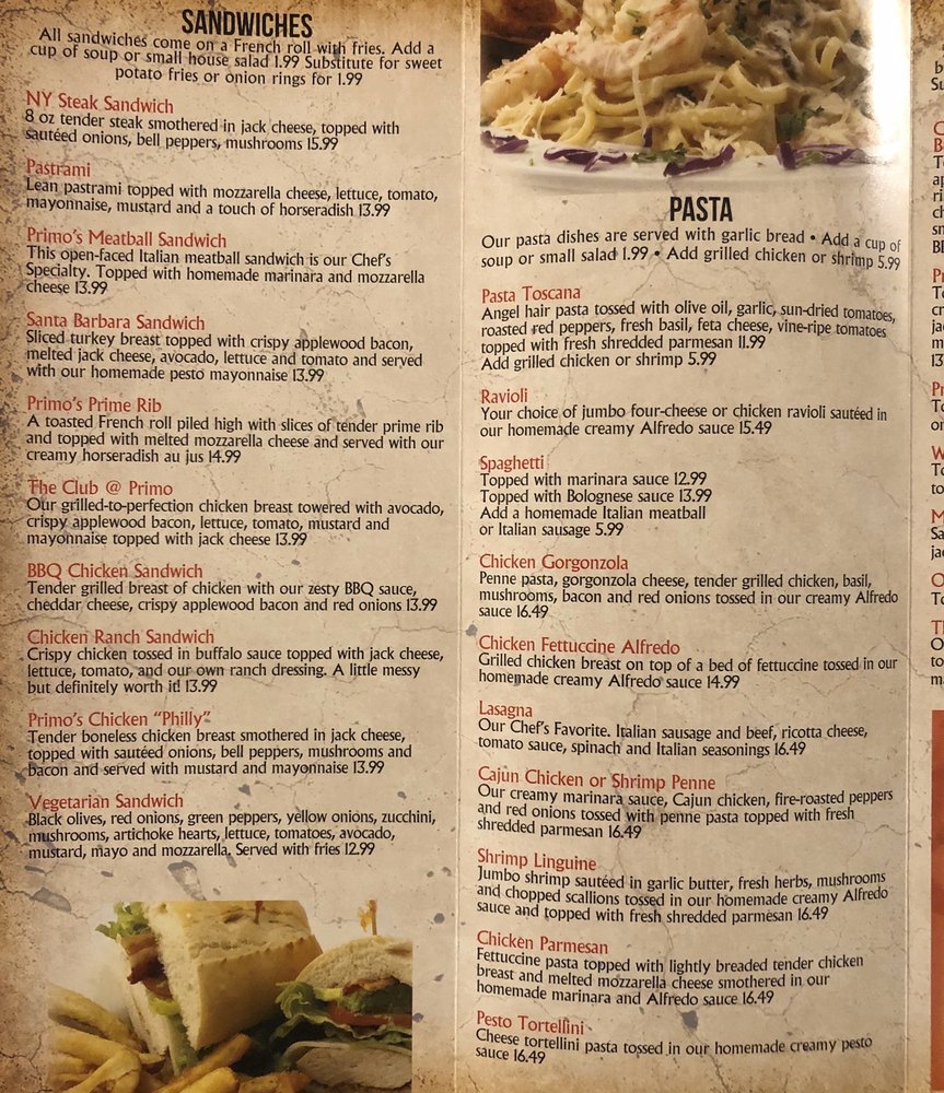 Come explore the vibrant menu at Primo—where every meal is crafted with care.
